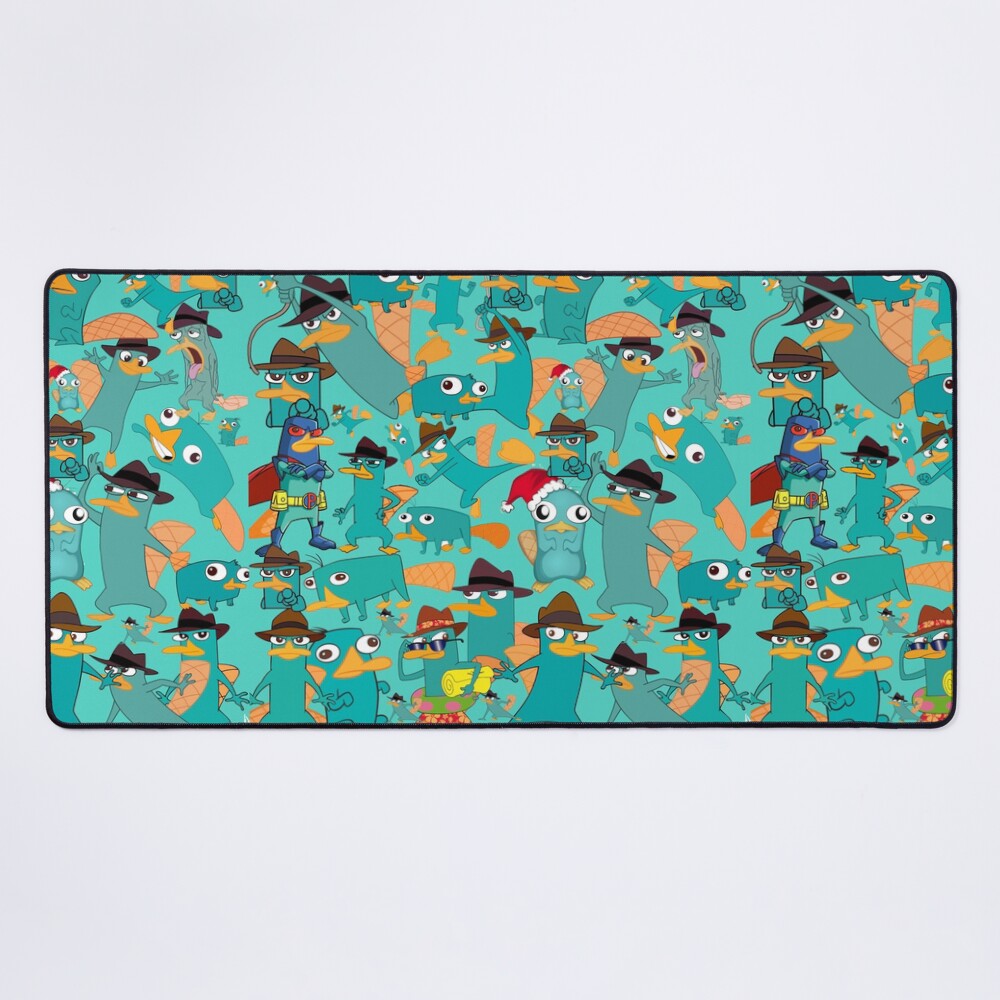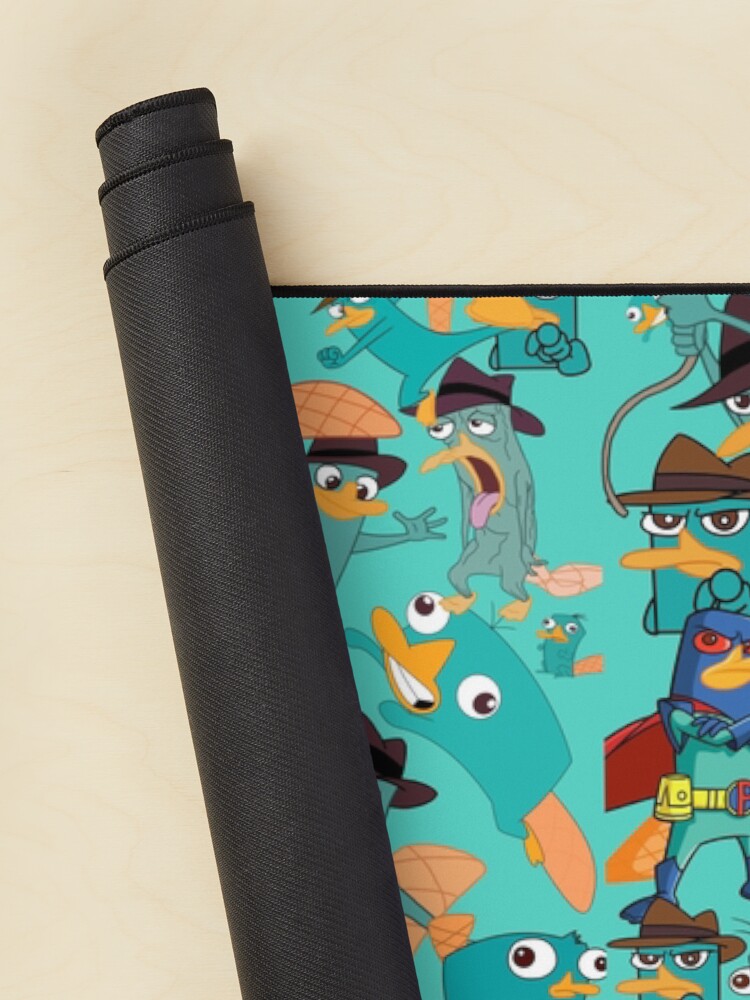 Perry The Platypus Phineas And Ferb Collage Pattern Design Aquamarine Background Mouse Pad