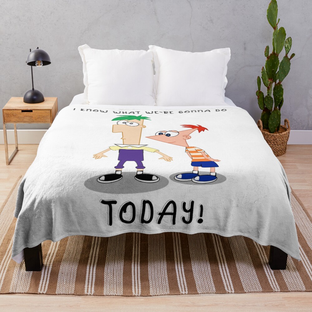Vintage Phineas Cartoon Art Ferb I Know What We Re Gonna Do Today Throw Blanket